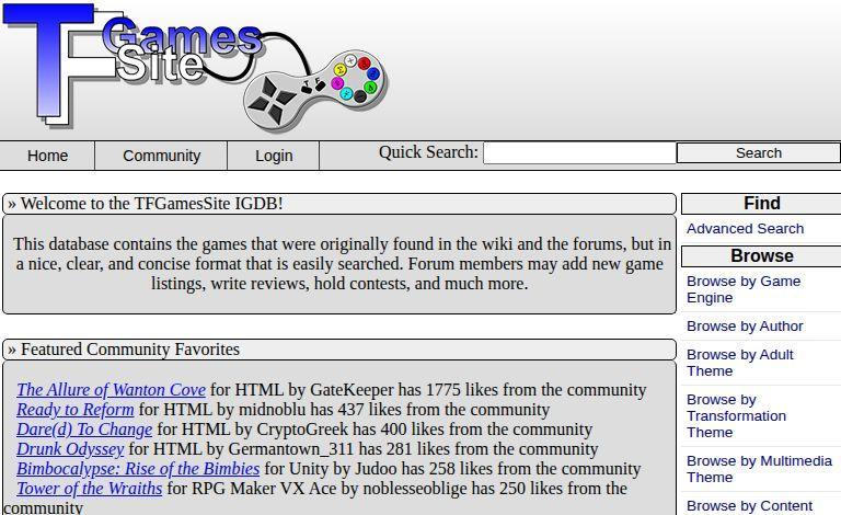 TF Games is now a personal favorite. The content is unique, engaging, and adult-themed, with a massive variety of games to explore. You can upload your own creations, download other people’s games, and enjoy countless hours of erotic storytelling. If you love text-based adventures, visual novels, flash games, or choose-your-own-adventure adult games, TF Games is a must-visit.